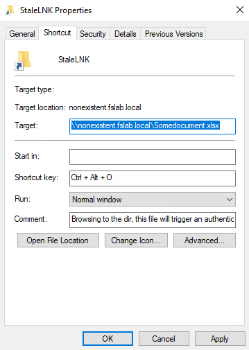 >> $lnk.TargetPath = "\\nonexistent.fslab.local\Somedocument.xlsx"