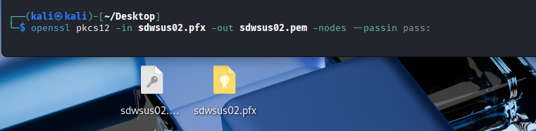openssl pkcs12 -in sdwsus02.pfx -out sdwsus02.pem -nodes --passin pass: